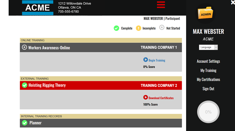 Keep your certificates all in one place! Upload, download or print your certificates anytime from your phone or computer. No more worry about misplacing your important papers. Get notifications when you certificates are about to expire. Access online training and achieve or manage your safety training at your own pace whenever, or where ever you choose!